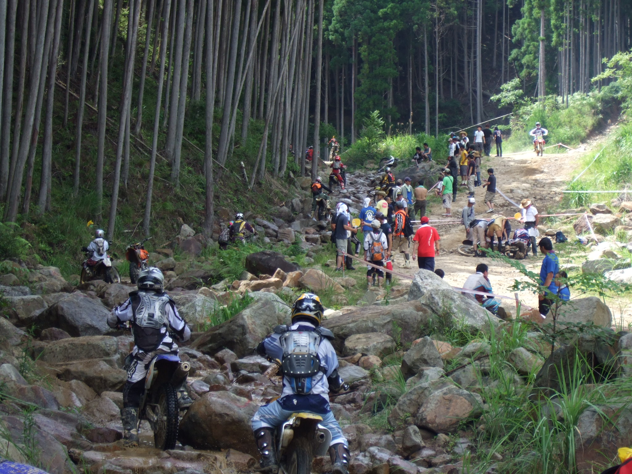 今日の出来事 2012年07月15日 バイク 4 目の前で多重衝突事故が起きました。 大渋滞が発生しました。 ところどころで人が倒れております。 嘔吐している人もいます。 悲鳴が響き渡ります。 歓声も響き渡ります。 遠くで「のろし」が上がりました。 バイクから人が緊急射出されます。 ついでにタンクとフェンダーも緊急射出されます。 空中分解?です。 本日は奈良トライアルマウンテンで開催されたエンデューロの大会に出場してきました。 私はエントリーが微妙に間に合わなかった為1時間半のノーマルヒルクラス(JNCCエンデューロのCOMPクラスくらい?)というちょっと易しめのクラスではしりました。 結果は77人中16位でした。 10位以内を目指していましたが無念です。 で、写真はラージヒルクラスという難しいほうのクラスなのですが… まさにカオスです。 3時間カオスです。 あまりの過酷さの為体温を冷やす為に泥水に自ら飛び込んでいる人もちらほら… カオスです。 多重衝突事故も何件か目撃しました。 ラジエターに穴が開き豪快にのろしを上げている選手もいました。 ヴァームヒルっていう長いヒルクライムで空中分解する選手もいました。 ↑迫力が伝わりませんがヴァームヒルです。 私は本来走らなくてもいいのですが関西のオッチャンにそそのかされて3回登頂しました。 スゲー達成感があります。 クリーンは1回も出ませんでしたが…orz とにかく楽しかったです。 是非トライアルライダーの皆さんも機会があればエントリーしてみるとイイと思います。 乾杯! [2回]PR