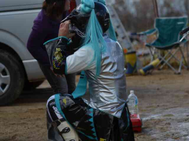 CGCいけのたいらゲロゲロさわやかエンデューロの感想 2012年11月20日 バイク 6 結果。 3時間で1週できず。 惨敗。 開始早々面食らいました。 コース図見ながら読んでいただきたいです。 http://cgcenduro.jp/wp-content/uploads/2012/11/cgc20121118_gerogero.pdf 「ダートフリークヒル」 ヌタヌタの下りです。転びはしませんでしたが、この時点でビビリモード全開です。 「スカイライトチューブ3段ヒル」 想像以上に難所です。 腕の無い私は力で押し上げる事しか出来ませんでしたが、何とか通過しました。 心の中ではコレが通過できたら1週出来ると思っていました。 「MCジャパンヒル」 小さなヒルクライムですが、手前にある小山とヤチのせいでまともに登れません。 うちのクラブのボスにラインを指示していただき何とか登れました。 「ミゾオチ」 多分NAで出るような下りです。 もちろんヌタヌタ…orz すっげ~~~~怖かった。 「ラッキー商会ヒル」 助走ポイントは田んぼ化していて、途中は黒土とグレープフルーツ大の石がゴロゴロ。 で、激のぼりです。 スカイライトチューブが1番の難所じゃなかった… 一番時間も使ったし体力も使いました… 怪我もしました… 自分の不甲斐なさにブチギレました… そして吐きそうになりました(青い髪の毛が口に入って) 「ポックルダウンヒル」 多分IBでもビビリ入るレベルです。 エンジン切って降りました。 カメラマンのおじさんに「おっさんみたいな声じゃなくてかわいい声出してよ」って言われたので、かわいい裏声で「お帰りなさいませご主人様」って言ったら満足してもらえた。 「ポックルダウンヒルとロックンロールビーチの間のヌタヌタ小ヒルクライム」 僕がスタックしていると後から来た人が「僕ら3人で紳士協定結びましょう!」って言ってくれたので、3人で力をあわせて皆で越えた。 この格好で(汗)↓ 「MXTRヒル」 登りきれずに1回頂上から落ちた。多分3メートルくらい? 幸いこの時の怪我は無かったが、本当に怖かった1日で一番怖かった。 ギャラリーとマーシャルに励まされて再チャレンジして登れた。 この時ちょっと目から汁が出てきた。 おっきい声で「ありがとう」って捨て台詞を吐いてその場を後にした。 「クレバス」 3時間でようやくたどり着いた私の終焉の地… ヌタヌタガレガレからのヒルクライム。 ちなみにその時右足は攣りまくっていて、左足はラッキー商会ヒルでお土産として頂いた打撲と擦り傷で心が折れました。 自分の中で何かが壊れる音がした… 相棒を木に立てかけ、エンジンを切り、リタイヤを覚悟した… でも、ただ時間が来るまで座ってるのも面白くないので、スタックしているライダーの力になれればと思い最後の力を使わせてもらいました。 もちろんこの格好で(汗)↓ 遠くでマーシャルがコーステープを回収している。 この時レースが終了した事を知り、また目から汁が出てきた。 この変なやつを助けたり声をかけてくださった皆様 「ありがとう!」 P.S. IRCのゲコタ買った。 とりあえずセローかTYS125Fに履かせてみようかと思っている。 [8回]