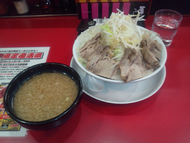 マシ 2013年01月10日 食 0 そういえば最近何か忘れてると思ったら、ブログ更新してなかったっけ(笑) なので今日は最近食べたモノをダラダラと並べてみる。 横綱ラーメン(並ネギマシ)←無料トッピングネギです。 あっ晴れ大府店(つけめんチャーシュー4ばかヤサイマシタマネギマシマシニンニクアリカラメ) 丸亀製麺(かけうどん大ネギマシ)←こちらも無料ネギです(汗) 結果体重3kgマシ(爆) [1回]