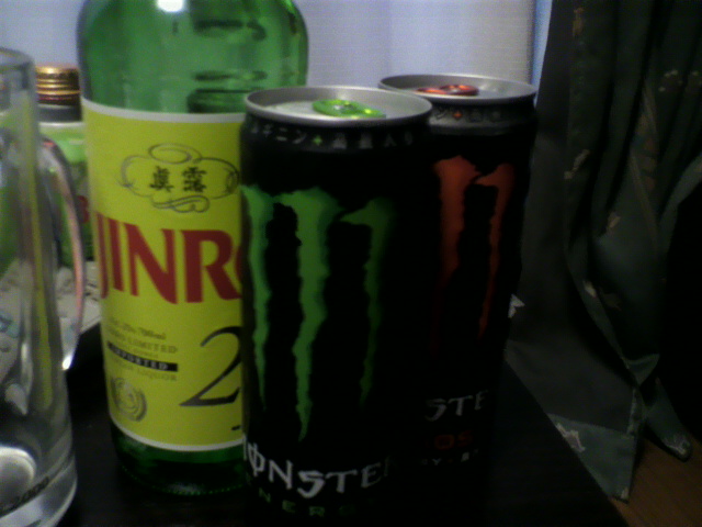 モンスタージンロ 2012年05月10日 食 0 私はガンダムとかはあんまり詳しくありません。 しかし、先日ジオン軍より作戦指令が下されましたので粛々と遂行したいと思います。 はい! モンスターエナジーとかいう舶来の飲み物です。 で、飲み方などの詳細な作戦指令が指示されていなかったので自分流で… まず氷をいっぱいに入れた中ジョッキにジンロを半分入れます。 で、残りのスペースにモンスターエナジーを注ぎます。 以上。 以下感想。 「濃ゆっ!」 どうやらジンロが濃かったようです。 比率的には1:2(ジンロ:モンスター)が私的にはいいようです。 以下警告。 カフェインの入ったジュースと焼酎を割って飲みますと最初は酔った感覚がなく口当たりもイイのでグイグイいけますが、一線を越えると急激に酔っ払います。 どうやらカフェインが効いているウチは酔った感覚が鈍るらしいです。 むかし、なんかの記事でカフェインが大量に入ったアルコール飲料で海外の未成年ボーイがぶっ倒れてるって記事を読んだことがあります。 注意しましょう。 以下推奨。 ジンロはややモンスターと合わない気がします。 多分「鈍角」との相性は抜群でしょう! 自己責任でお願いいたします。 [0回]PR