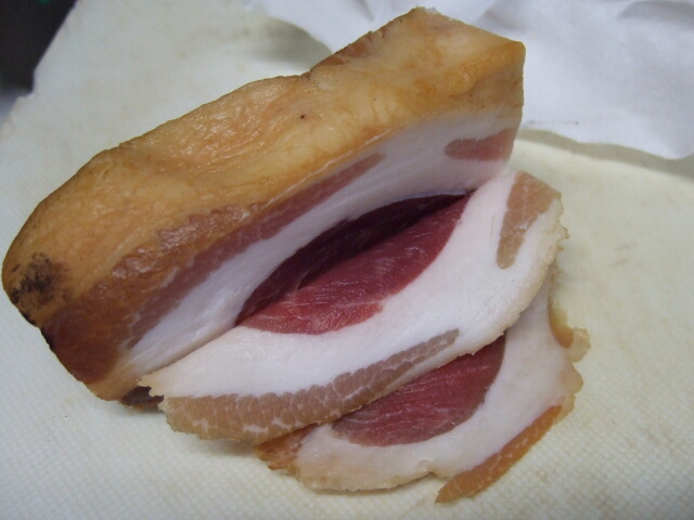 手作りベーコン完成 2011年04月11日 食 2 3時間に及ぶスモークを終え、1晩冷蔵庫で寝かせたベーコンが完成いたしました。 なんか今回は薫煙の色がつきすぎてしまったような…何でだろう? でも塩抜きの時の味はかなりよかったので味には問題ないはず… で、切ってみました。 お?!イイ色! 今回もキレイなベーコンできました^^ で、お味はというと… いつものベーコンより若干燻製の香りが強く感じれれたものの、上々の出来です! 冷蔵庫で寝かせてればだんだん香りがなじんで落ち着いてくると思います。 そのまま焼いて食べるもよし、スープもよし、カルボナーラスパゲッティーなんかも最高です。 あ、バーボンウィスキーなんかとの相性も抜群ですb ちなにに手作りベーコンの賞味期限は冷蔵庫で1週間くらいです。 もっと強く塩を振って、しっかり温度をかけて薫煙してやるか、冷凍しておけば長持ちしますが私は好きではないので少量をつくって食べきるようにします。 さて次のベーコンを仕込みますか~っと^^ [1回]PR
