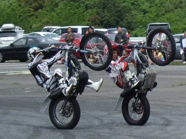 今日もキョウセイ(`・ω・´) 2011年05月05日 旅 0 これを見に行きました… いや~色白でキレイな方です(゚∀゚ ) じゃなくてモビリティーフェスタってのを見に行きました。 で、基本↓コレ↓を見に行ったのですが。 トライアルデモってやっぱウケますね~! でも残念ながら毎回いるのが「専用バイクだから簡単だよ!」とか彼女らしき人に言ってる男ドモ… 「ああ、やってみたまえ鎖とプロテクターの付いた革ジャンを着た茶髪プリン頭君!」 「そして観客の前で豪快にコケなさい!きっと大ウケだから!」 と、心の中で言っていたのはナイショの話… あと、すげぇと思ったのがコレ↓ モタードレースです(`・ω・´) バイクが滑ってます!アスファルトの上で! しかもウルトラ速い!音がイイ(・∀・) やっぱ現物見るとすごいです! しかも… イベントレースだってのにみんなタイヤウォーマーでぬくぬくしてます。 だが、 裏を見るとこんなかんじでした。 発電機が「ヴ~~~~ン」てうなってました。 涙ぐましい努力です。 2輪関係でデモしてくれたみなさん本当にありがとうございました。 4輪?スーパーカー?らんぶるぎーに?う~ん…なんか置いてあった気が… んなもんシラネ…(´・ω・`) あ、見終わったあと知多へ… 練習連続5日目になり体はガタガタ…練習内容もこの上なく薄っぺらいモノでした…orz あすはじっちゃの家でターン練習でもいたしまする~ [0回]